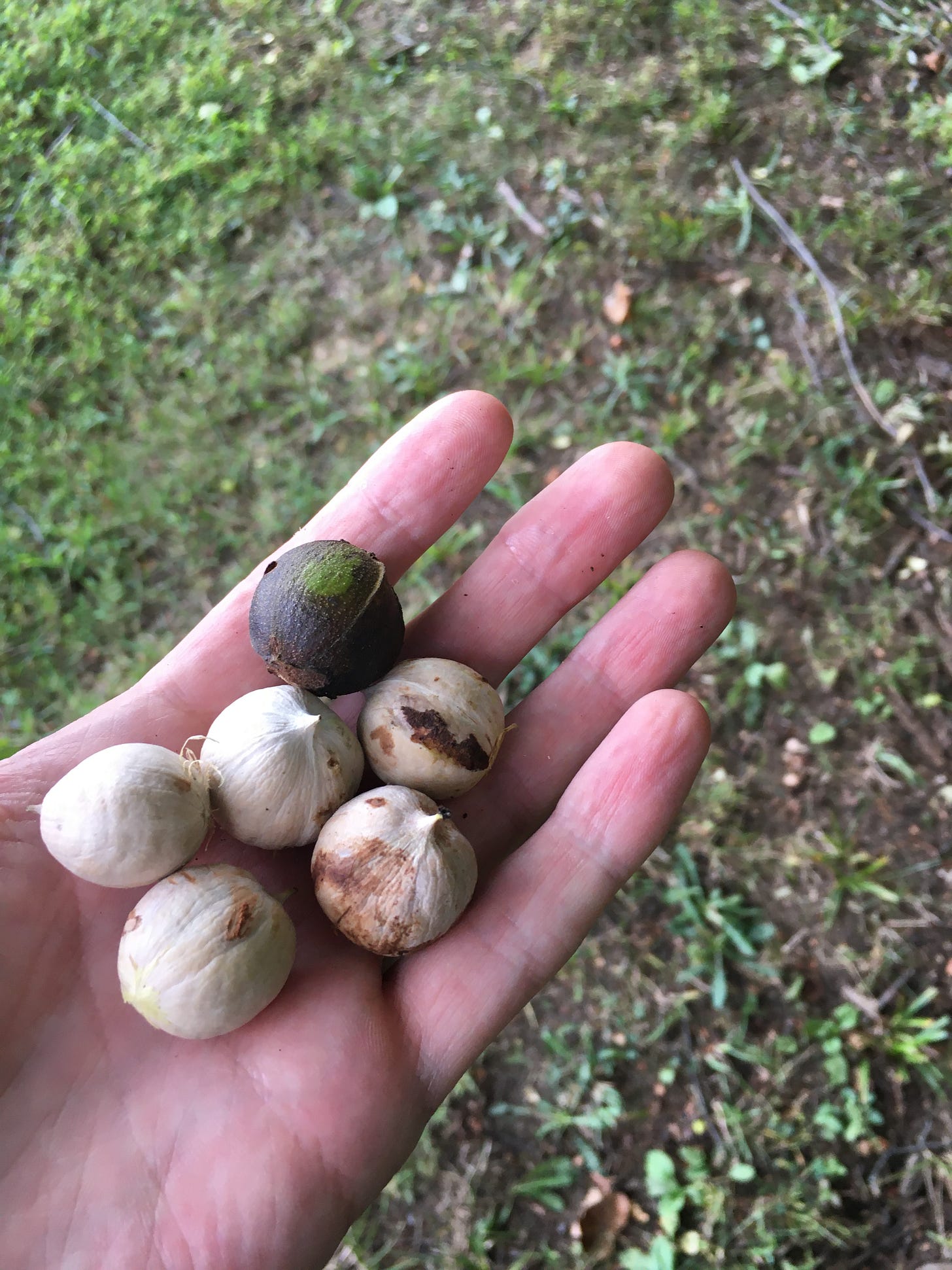 Pull the husk off any nuts you find and spread them out to dry. An indoor, conditioned space is ideal, because it likely has low humidity.